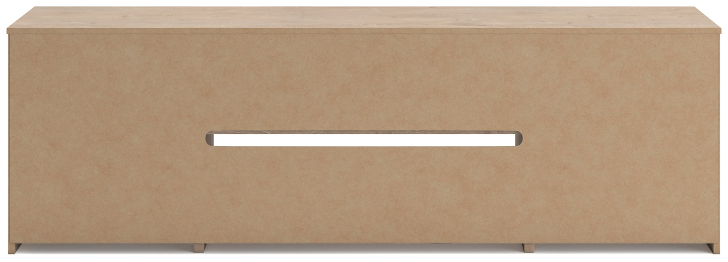 This TV stand embraces a classically charming aesthetic and repurposes it for modern living. Its light replicated wood grain appeals to your love of vintage character, while the chic chevron pattern is effortlessly on trend. And with hidden storage behind the doors, your media accessories stay tucked away in style.